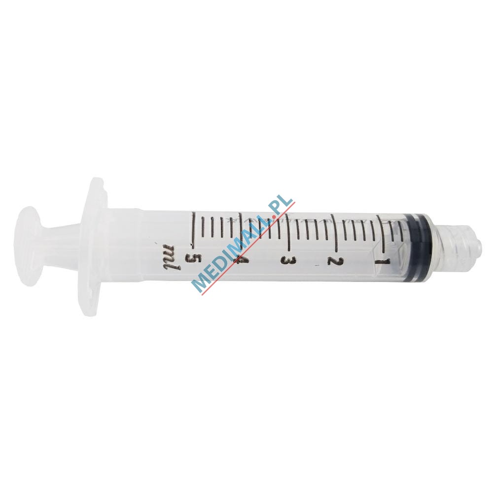 Strzykawki 3-cz wykonane z polipropylenu (cylinder i tłok), uszczelka z syntetycznej, nie zawierającej lateksu gumy. Zastosowanie syntetycznych komponentów całkowicie eliminuje ryzyko wystąpienia alergii. Przezroczysty cylinder zapewnia doskonałą widoczność zawartości strzykawki, a wyraźna podziałka i płynny ruch tłoka (dzięki zastosowaniu powłoki silikonowej) ułatwia dokładne dawkowanie preparatu. Każda strzykawka wyposażona została w pierścień zabezpieczający, który chroni przed wysunięciem się tłoka. Końcówka Luer-Lok zabezpiecza igłę przed przypadkowym wysunięciem. Strzykawki pakowane są pojedynczo i sterylnie w blister papierowo-foliowy – sterylizowane promieniami Gamma.Pojemność 5ml