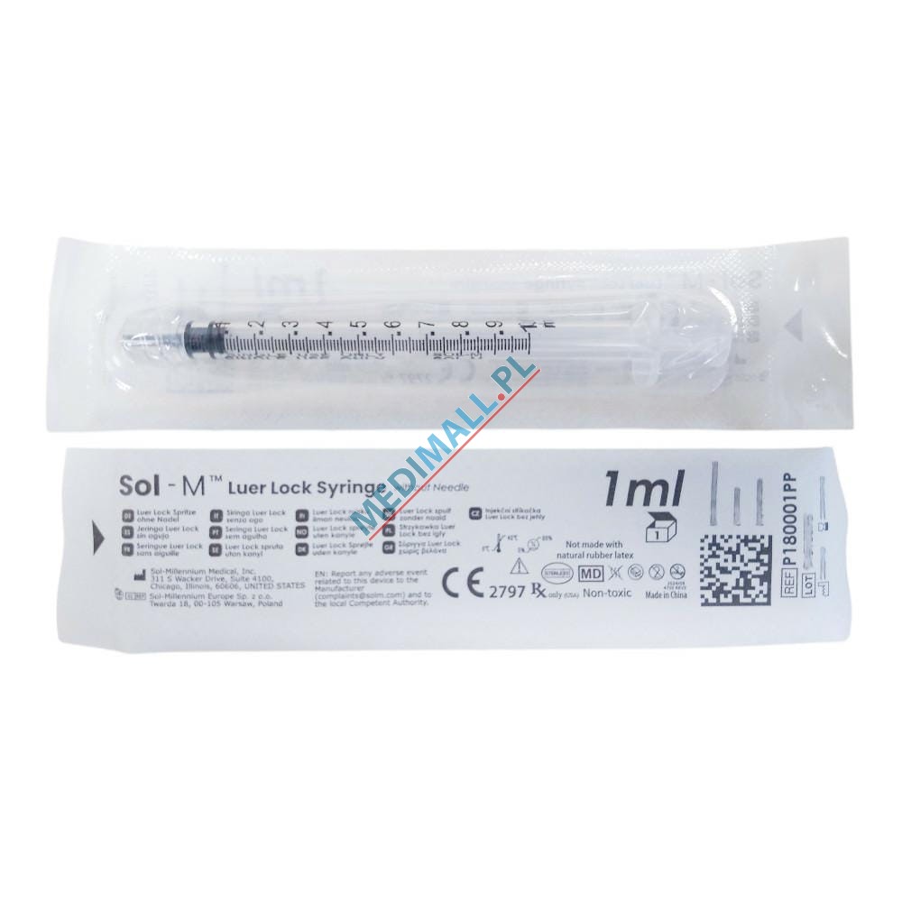 3-part syringes SOL-M 1ml (PP) LUER LOCK Low Dead Space (100 pcs)
