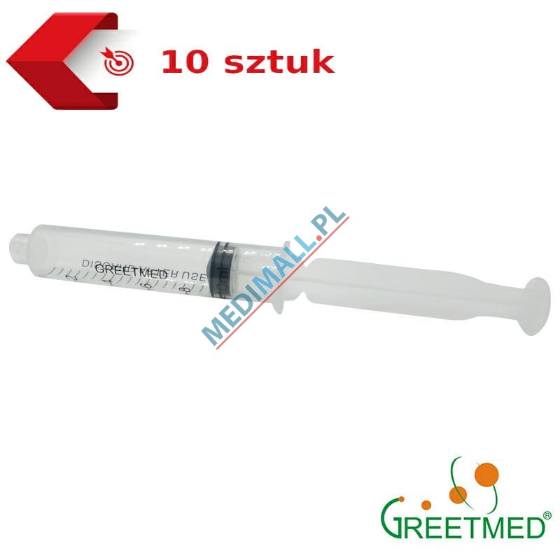 3-piece syringe GREETMED 10ml LUER LOCK for plasma breakable plunger (10 PIECES)