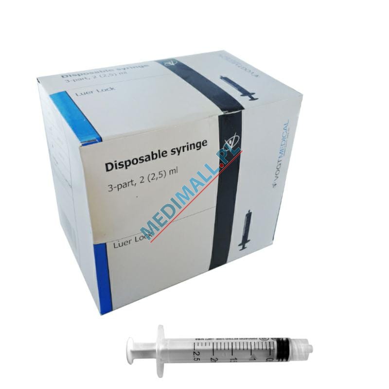 3-piece syringes VOGT 2(2,5)ml LUER LOCK (100 pcs)