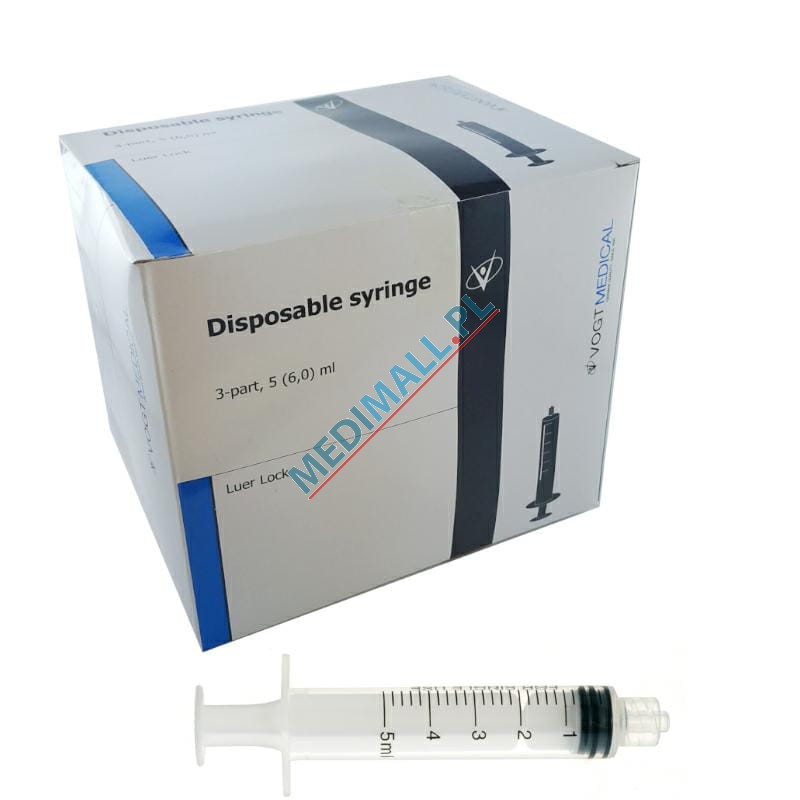 3-piece syringes VOGT 5ml LUER LOCK (100 pcs)