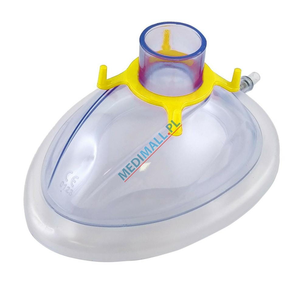 Soft and comfortable anesthesia mask. The soft PVC air cuff ensures easy fit to the patient's face. The mask has a pressure regulation valve.