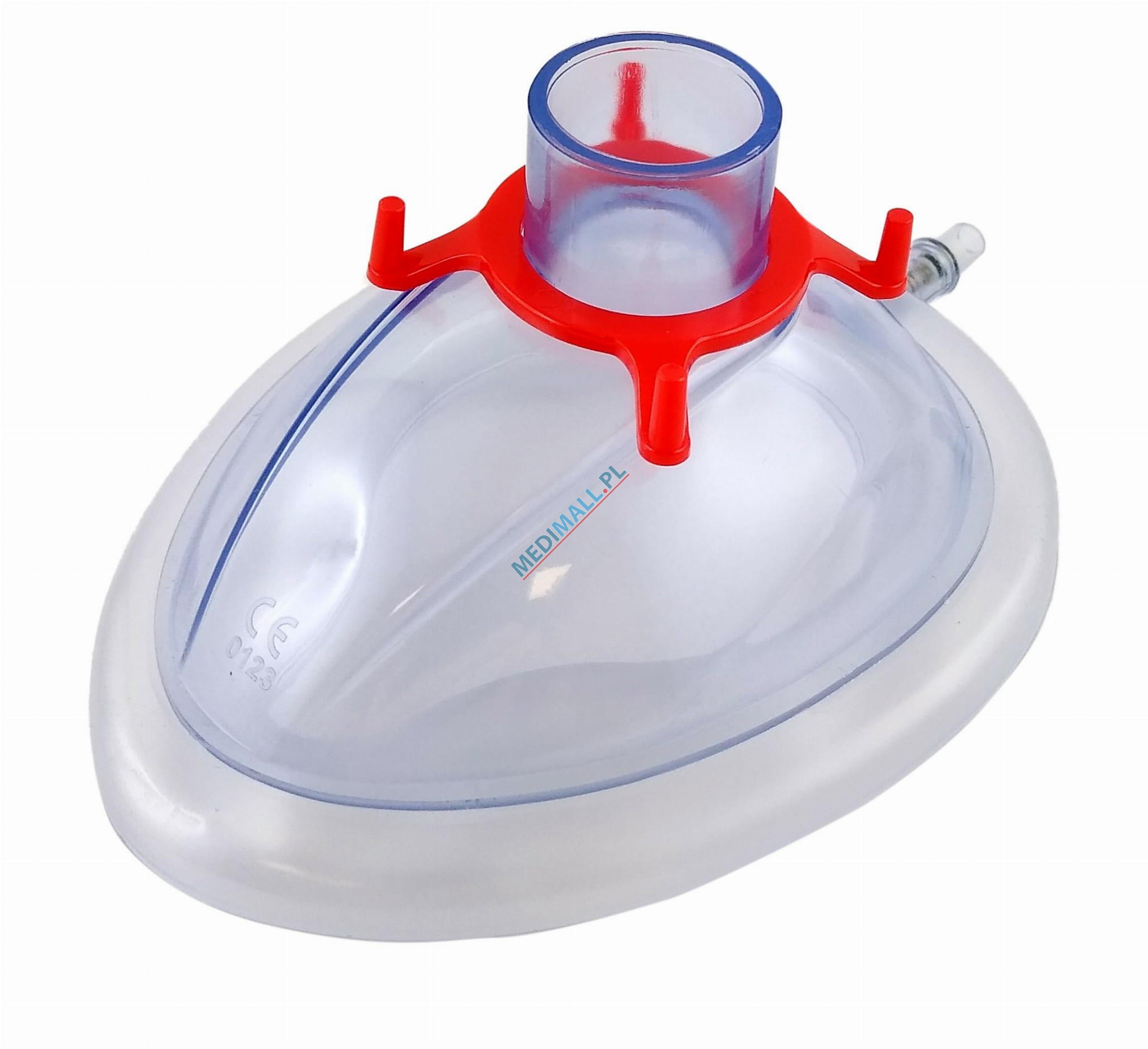 Soft and comfortable anesthesia mask. The soft PVC air cuff ensures easy fit to the patient's face. The mask has a pressure regulation valve.