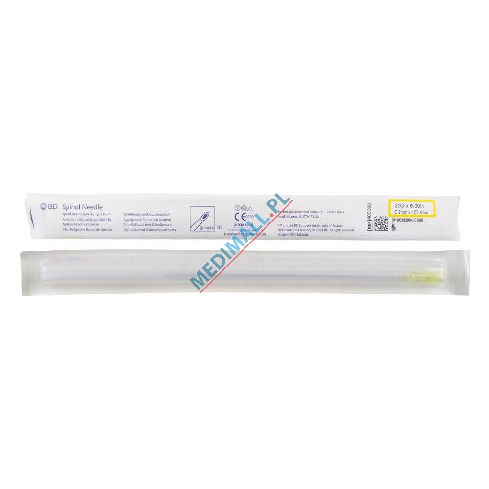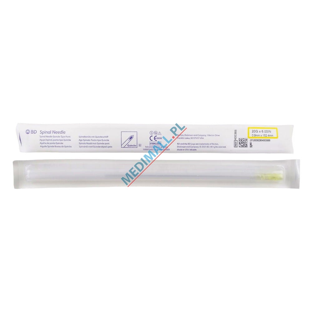 BD SPINAL NEEDLE 0,9 x 152,4 mm QUINCKE POINT 20G x 6'' yellow 400368 (1 PIECE)