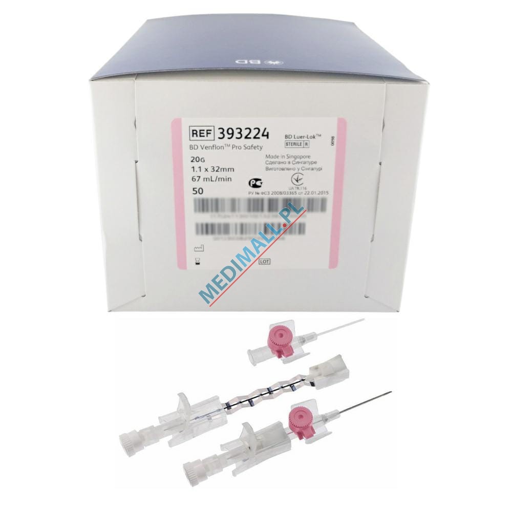 BD VENFLON PRO SAFETY 1,1 x 32mm 20GA pink (50 pcs)