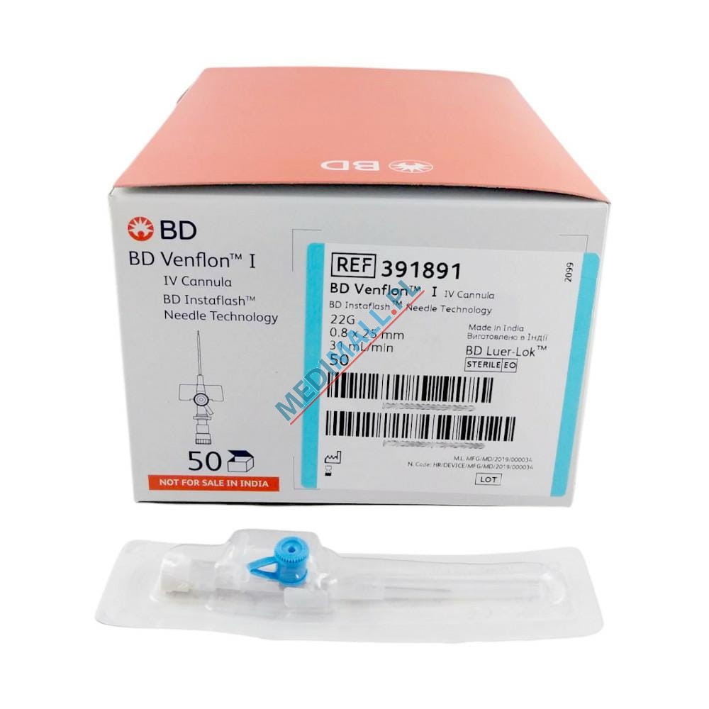 BD Venflon I 0,8 x 25mm 22G INSTAFLASH needle ref. 391891 blue Becton Dickinson (50 pcs)