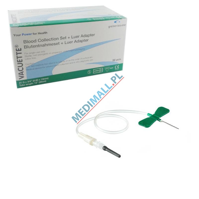 Blood collection set VACUETTE 0,8x19 21G + Luer Adapter 30cm TUBING ref. 450065 (50 pcs)