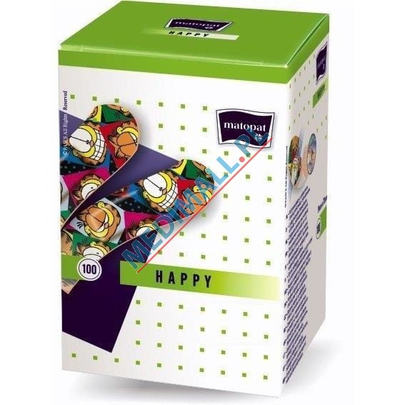 Colorful plasters MATOPAT HAPPY 19 x 76 mm with Garfield (100 pcs)