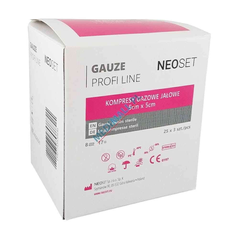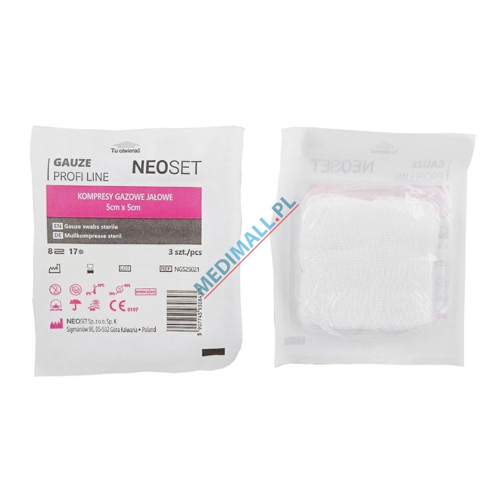 GAUZE swabs STERILE 17T 8L 5x5cm 3pcs NEOSET PROFI LINE (25peel pouches x 3pcs) BOX