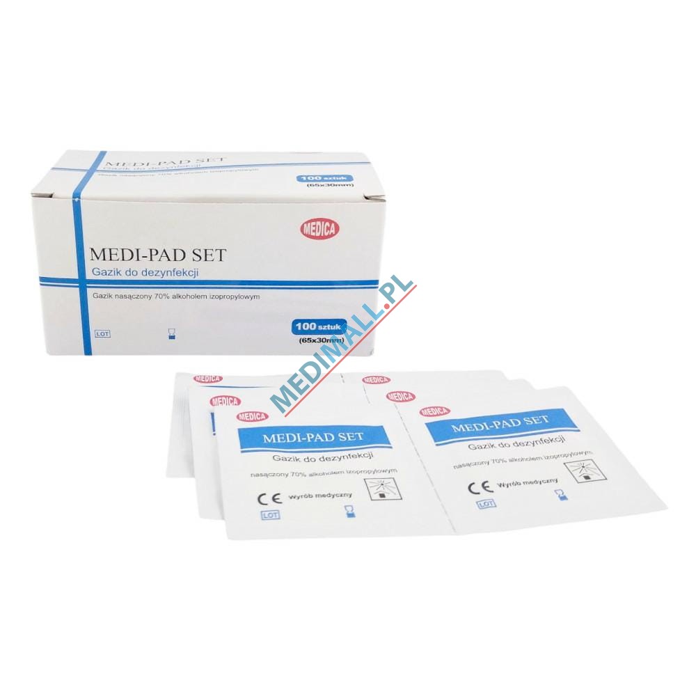 Gauze pads moistened with isopropyl alcohol MEDI-PAD 6,5x3cm (100 pcs)