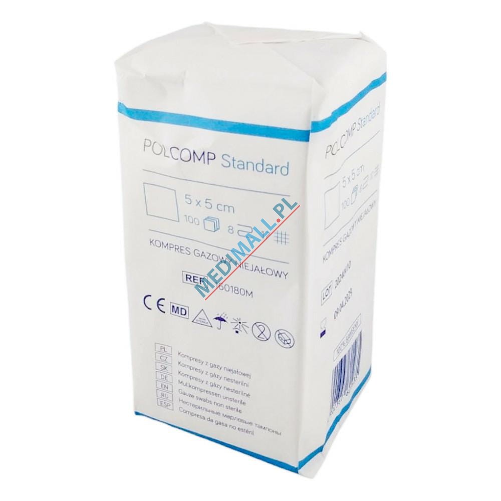 Gauze swabs 17T 8L 5x5cm non-sterile POLCOMP (100 pcs)