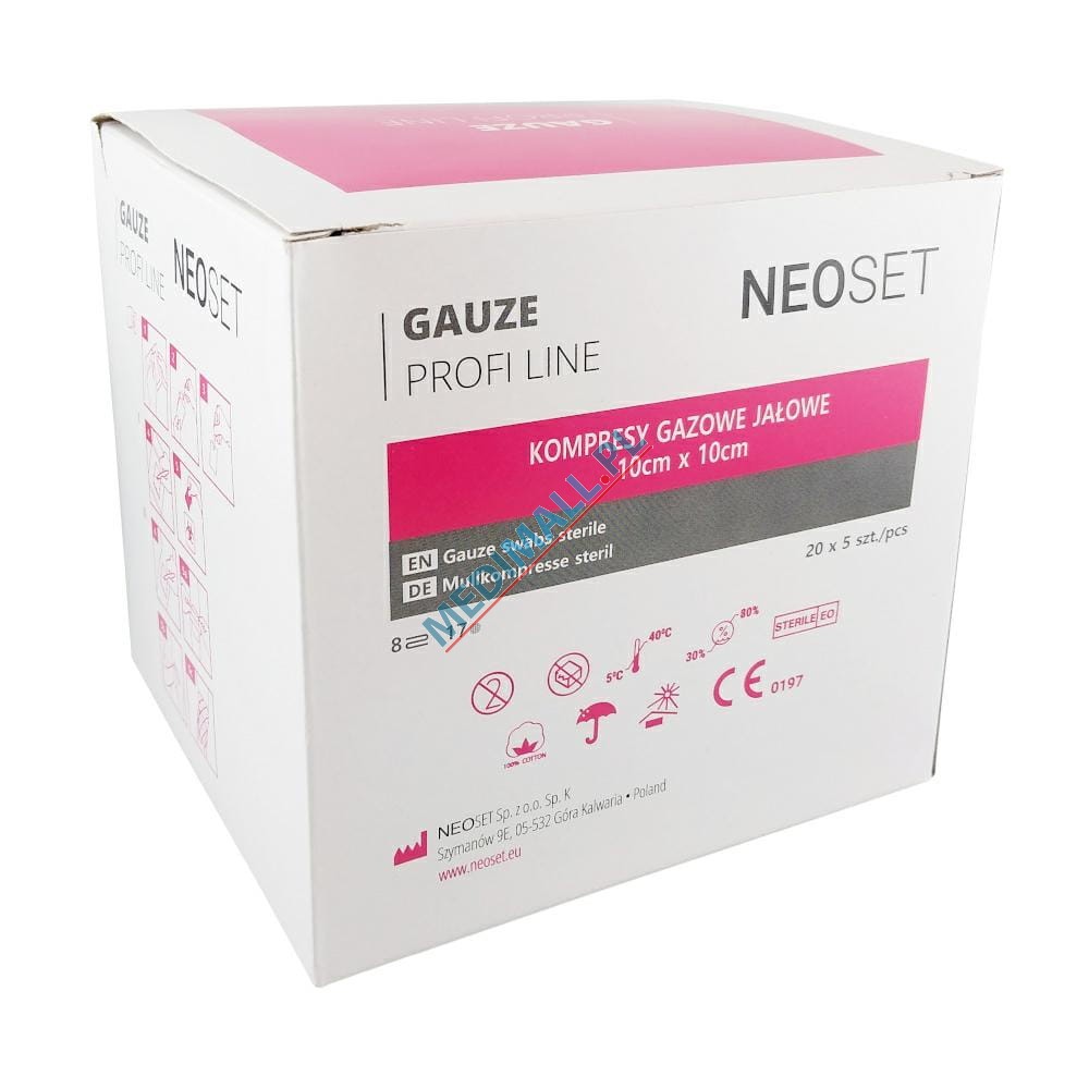 Gauze swabs STERILE 17T 8L 10x10cm 5pcs NEOSET PROFI LINE (20 peel pouches x 5pcs) BOX