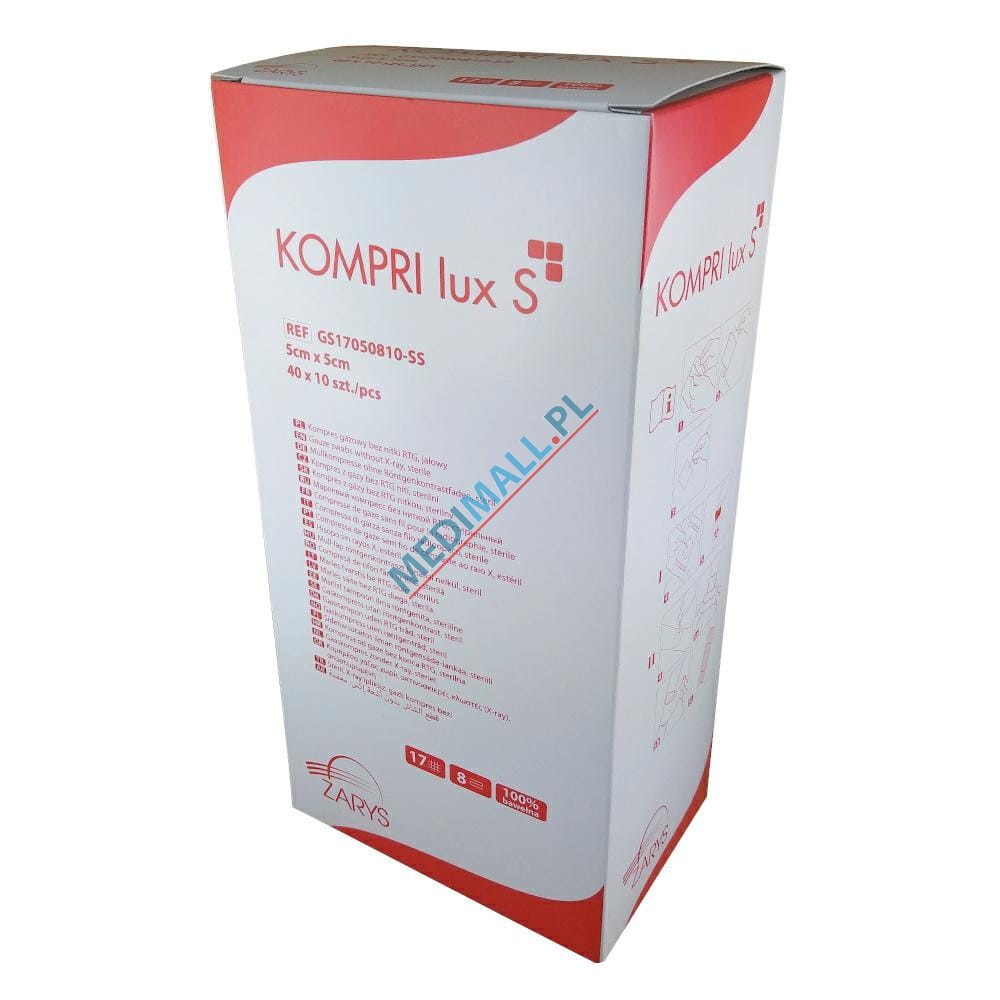 Gauze swabs STERILE 17T 8L 5x5cm 10pcs KOMPRI LUX S (40 peel pouches x 10pcs) BOX