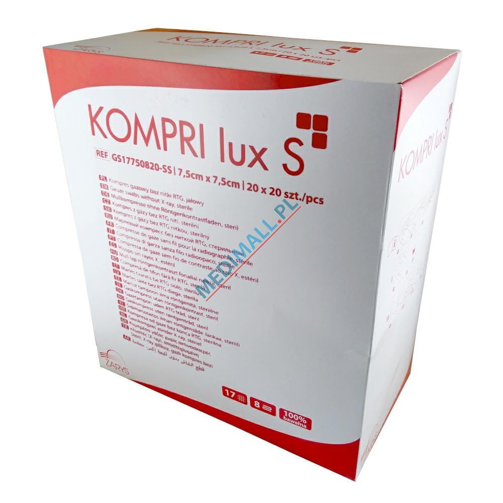 Gauze swabs STERILE 17T 8L 7,5x7,5cm KOMPRI LUX S (20 peel pouches x 20pcs) BOX