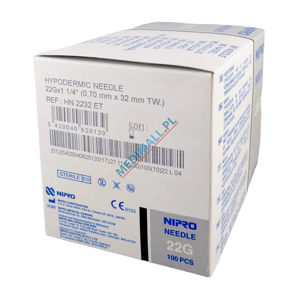 Hypodermic needles NIPRO Needle 0,7 x 32 22G x 1 1/4" black HN 2232 ET (100 pcs)
