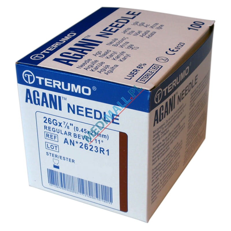 Hypodermic needles TERUMO AGANI 0,45 x 23 26G x 7/8" brown AN*2623R1 (100 pcs)
