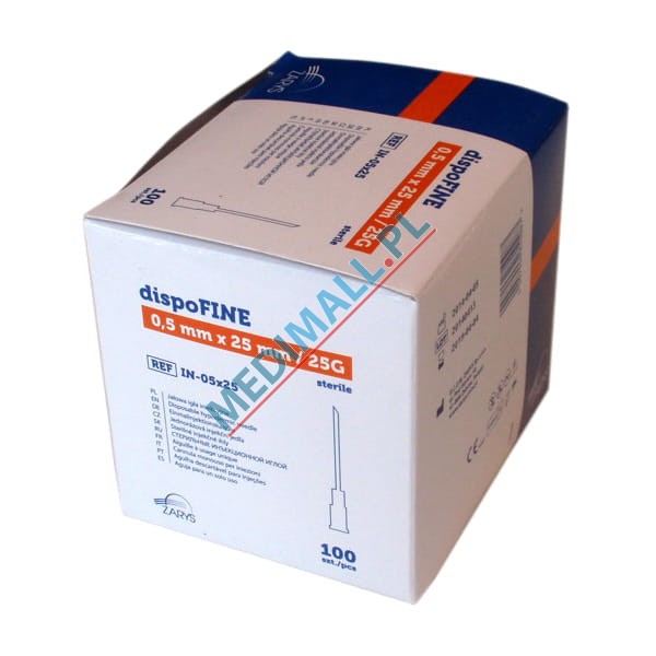 Injection needles DISPOFINE 0,5 x 25 25G x 1/2" orange (100 pcs)