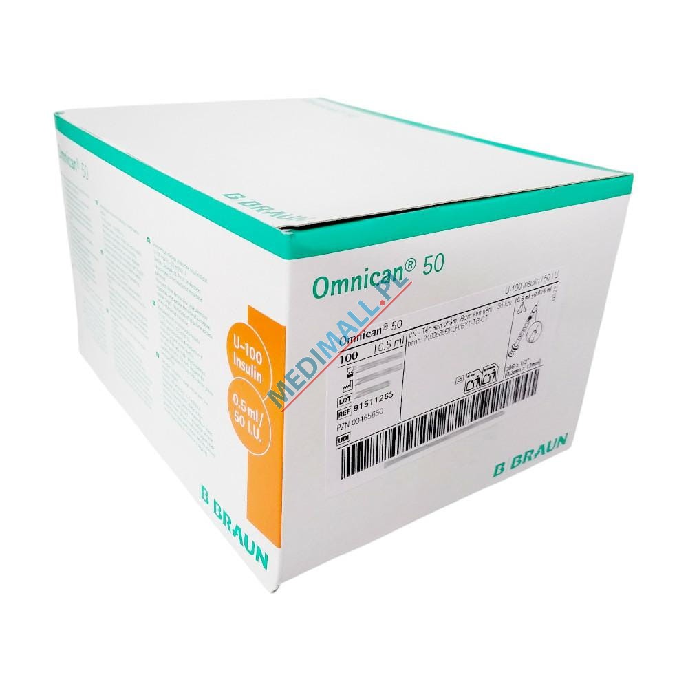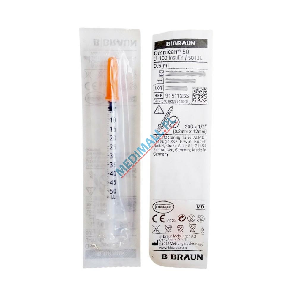 Insulin syringes B.BRAUN OMNICAN 50 0,5ml U100 0,3x12mm separately packaged ref. 9151125S (100 pcs)