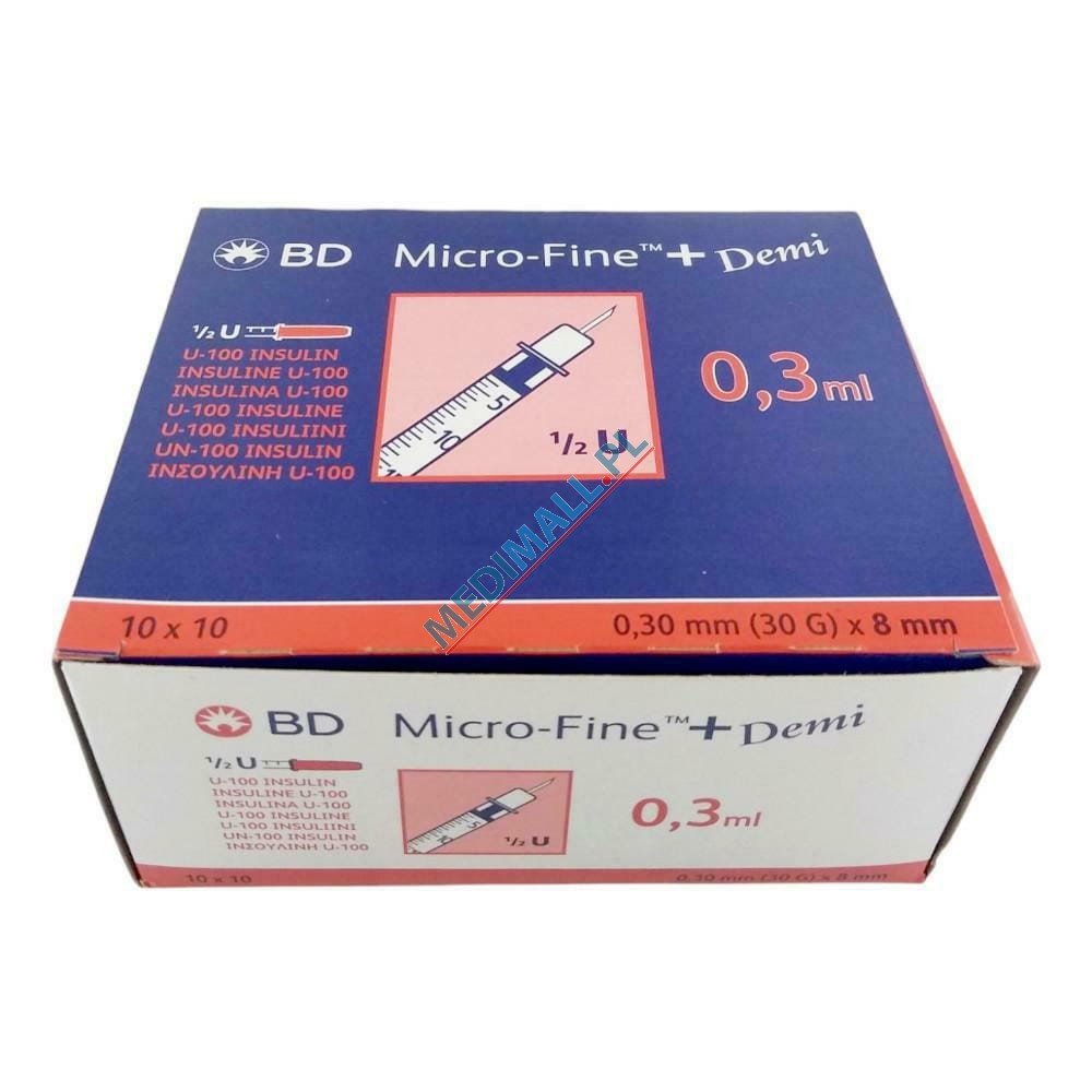 Insulin syringes BD MICRO-FINE PLUS 0,3ml U100 needle 0,3x8 ref. 324826 (100 pcs)