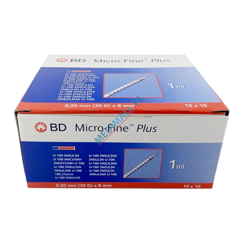 Insulin syringes BD MICRO-FINE PLUS 1ml U100 with integrated needle 0,3x8 BOX (10x10pcs)