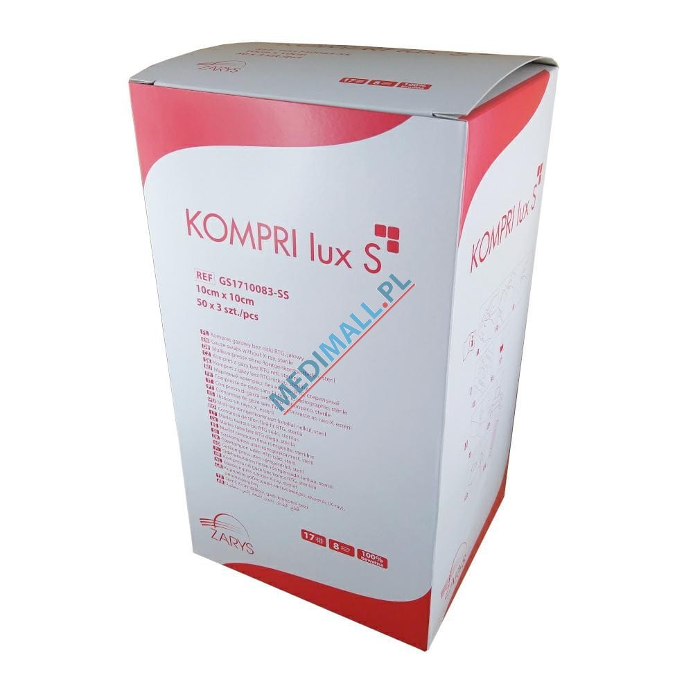 KOMPRI LUX S 17T 8L 10 x 10cm 3pcs (50 peel pouches x 3pcs) BOX gauze swabs STERILE