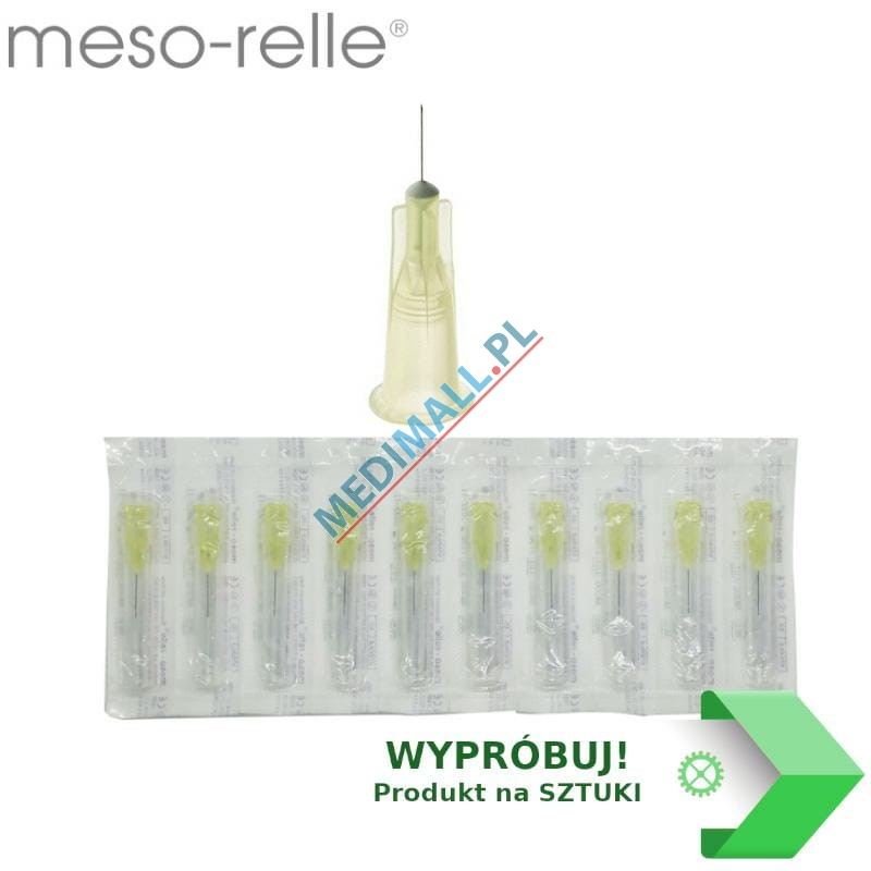 Needles are available in various diameters: 27G (0.4 mm), 30G (0.3 mm), 31G (0.26 mm), 32G (0.23 mm) and various lengths depending on the needle's intended use. Short Meso-Relle needles are perfect for needle mesotherapy, while longer ones are ideal for fillers, sclerotherapy, and dentistry.