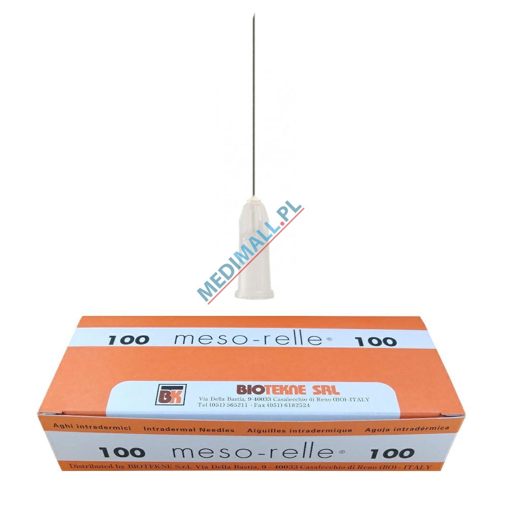 The needles come in various diameters: 27G (0.4 mm), 30G (0.3 mm), 31G (0.26 mm), 32G (0.23 mm) and different lengths depending on the intended use of the needle. The short Meso Relle needles are perfect for needle mesotherapy, while the longer ones are ideal for fillers, sclerotherapy, or dentistry.