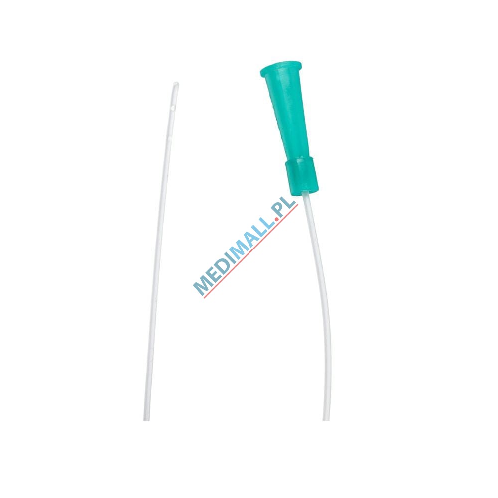 Made of flexible PVC, resistant to kinking and twisting. Atraumatic, slightly rounded tip facilitates catheter insertion. Equipped with two side openings with gently rounded edges. Transparent tubing allows for visual inspection. Color-coded size on the connector, numerical size designation on the packaging. Sterile, sterilized with ethylene oxide.