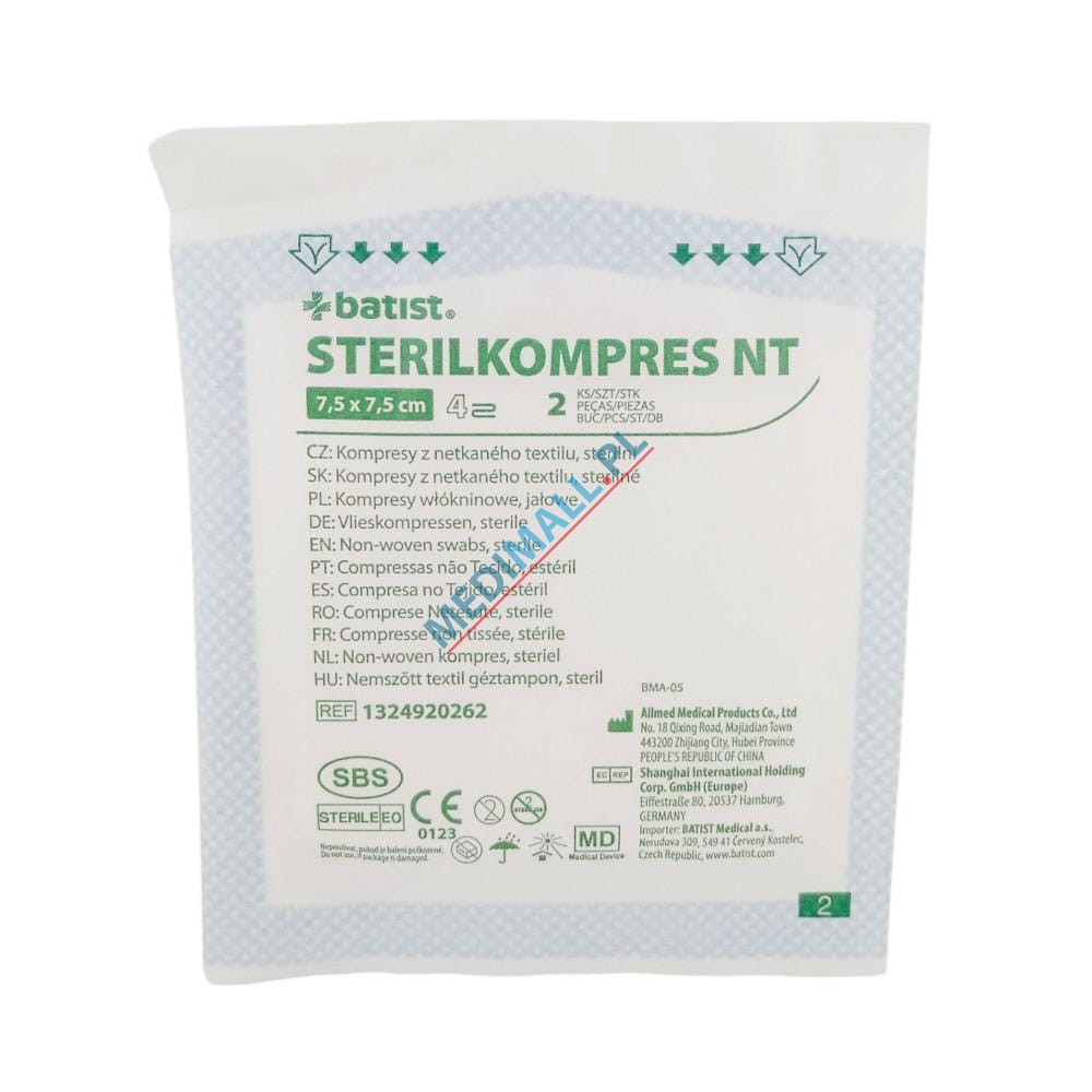 Non-woven swabs sterile 7,5x7,5cm BATIST STERILKOMPRESNT 4-l (1 x 2pcs)