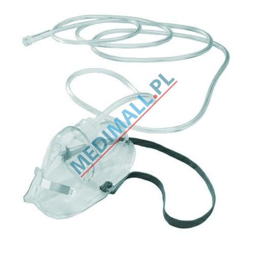 Sterile mask made of transparent, non-toxic PVC. The mask is latex-free. Equipped with an adjustable nose piece and elastic band. The 2.1m (+-5%) tubing is terminated with a universal connector. The tubing is kink-resistant. The mask is designed to administer medium-concentration oxygen.