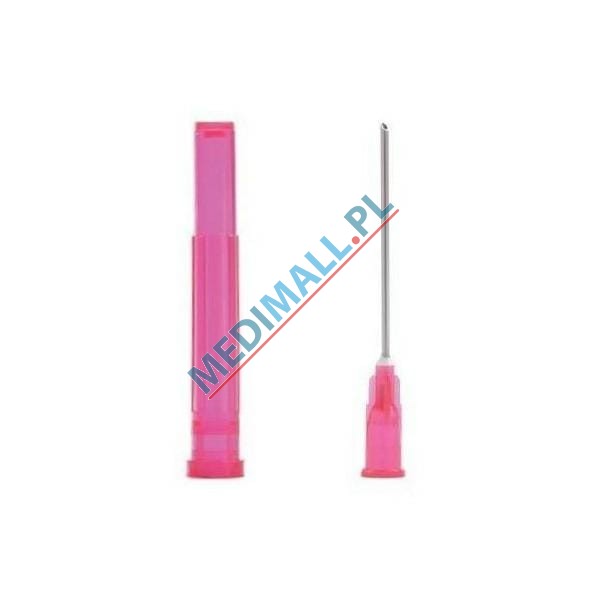 A needle with a length of 40mm, with a 45° angled cutting edge, made of stainless steel with a blunt finish (polished pencil finish). The needle is designed to minimize the chance of rubber membrane fragments from the stopper entering the vial with the preparation. Additionally, the blunt tip reduces the risk of accidental injury. Different color coding of the hub and colored shield prevents confusion with standard needles.