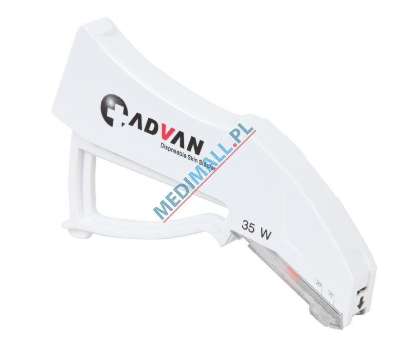 The specially designed ADVAN disposable stapler is a tool intended for surgical skin stapling. Thanks to its innovative structure and safe application, this skin stapler allows for rapid stapling during surgery. It is characterized by a low histological reaction, good fit and wound healing, ensuring a small surgical scar and no pain. The ADVAN F-35 W Skin Stapler enables greater efficiency with minimal risk of infection.