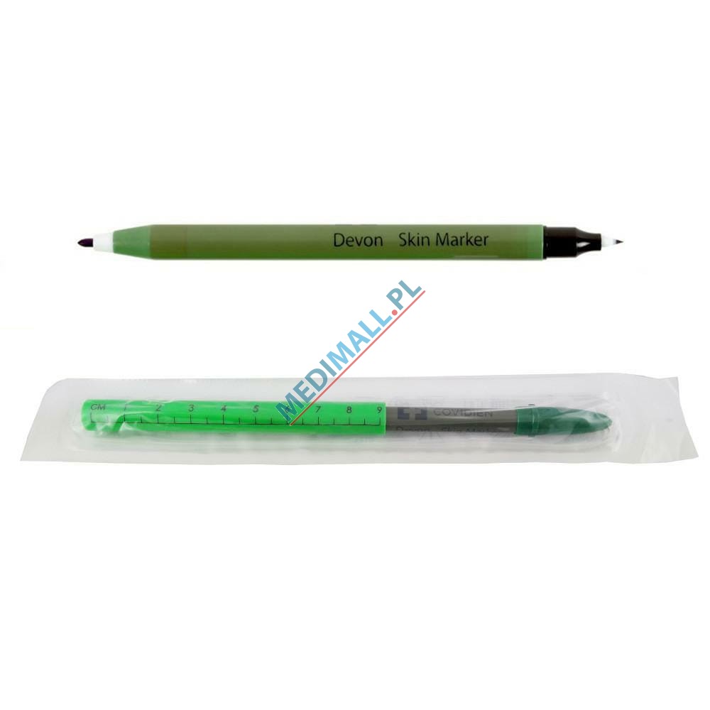Surgical skin marker DUAL TIP COVIDIEN DEVON with ruler sterile GREEN