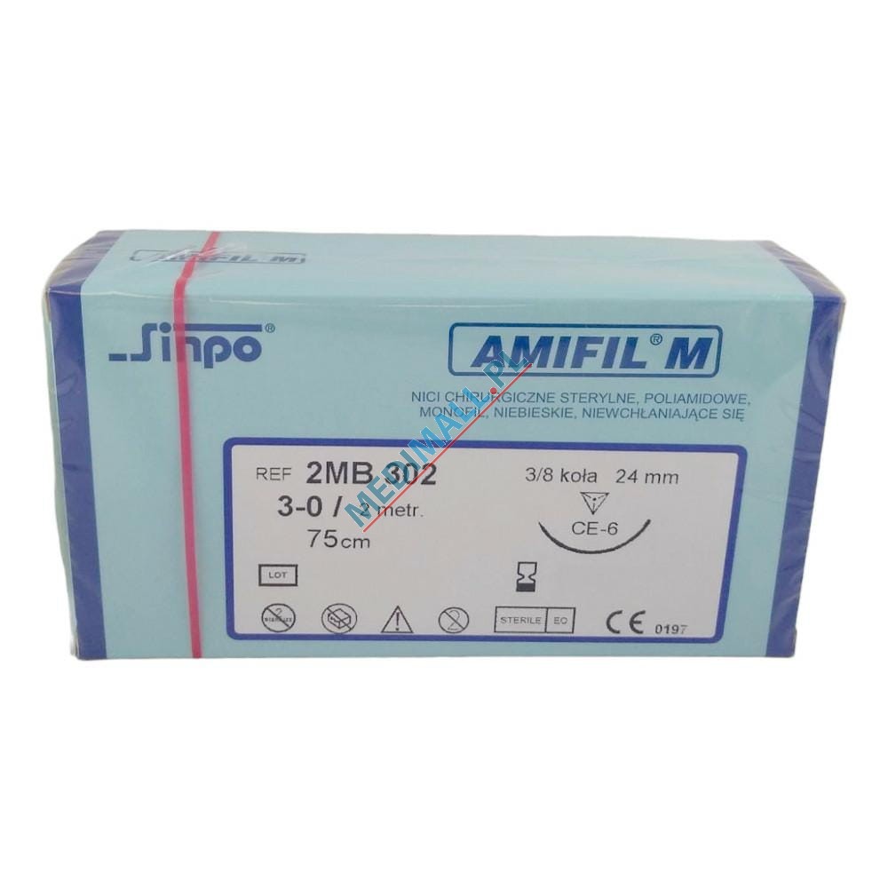 Sutures AMIFIL M 3-0 CE-6 24mm 75cm non-absorbable 3/8 circle 2MB 302 (10 pcs)