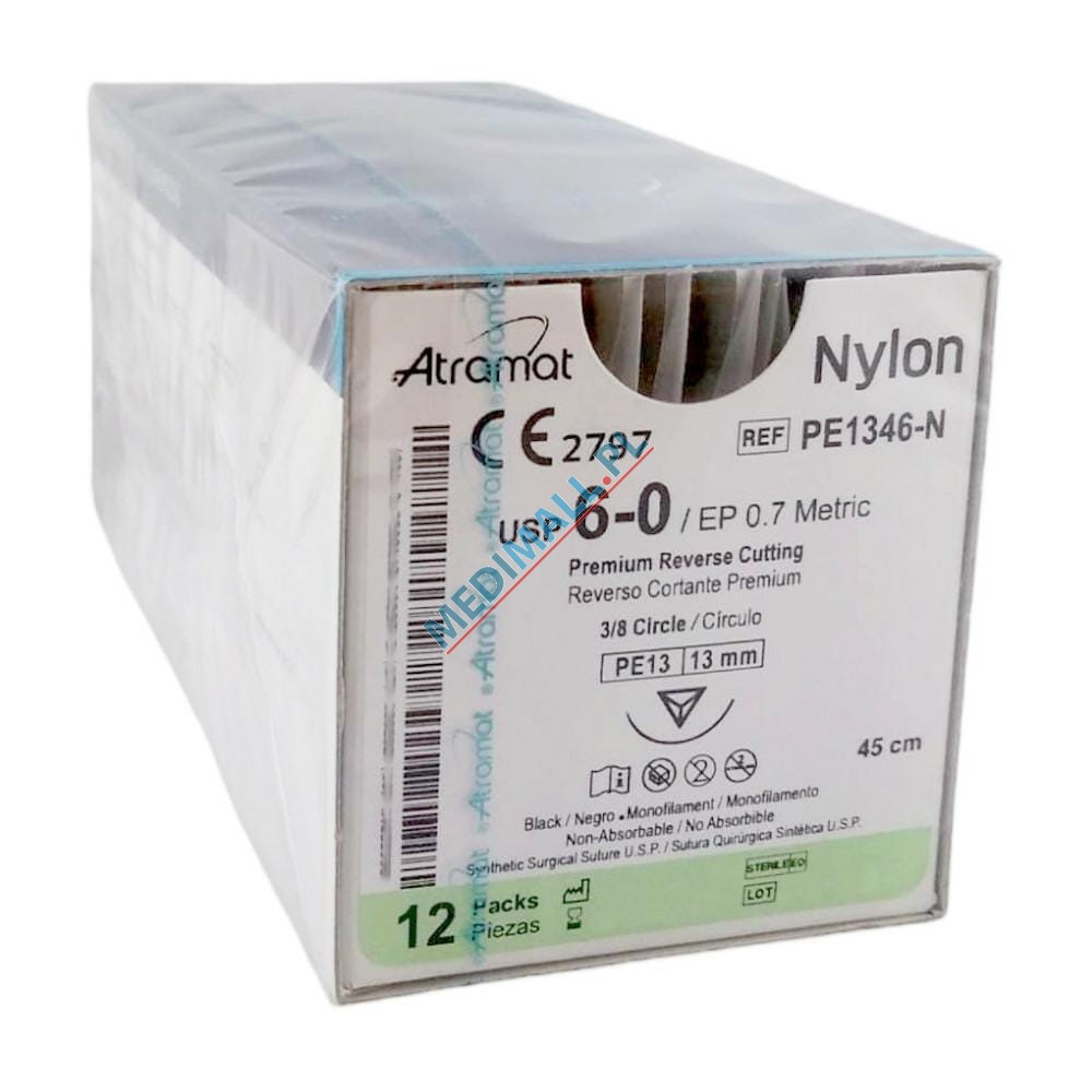 Sutures ATRAMAT NYLON 6/0 PE13 length 45cm needle 3/8 circle reverse cutting (12 pcs)