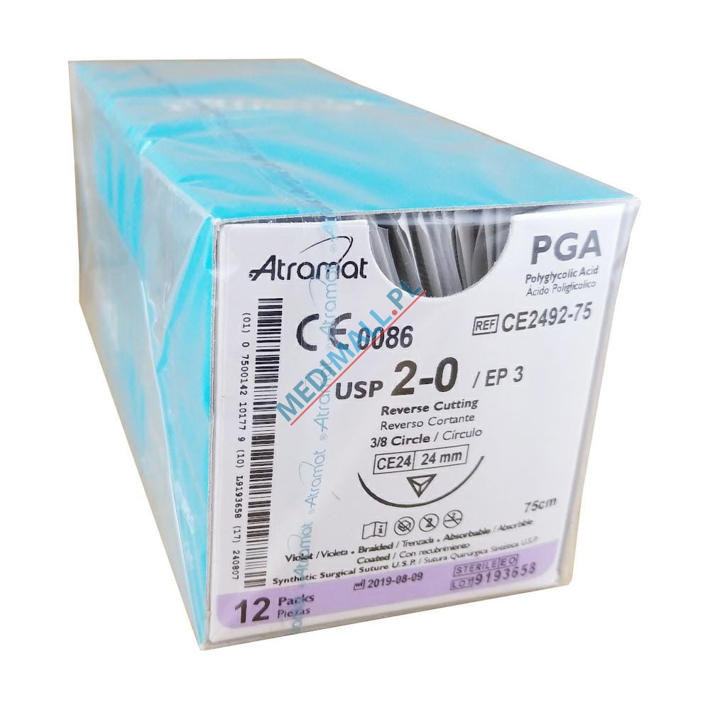 Sutures ATRAMAT PGA 2/0 CE-24 length 75cm needle 3/8 circle reverse cutting TRANSPARENT (12 pcs)