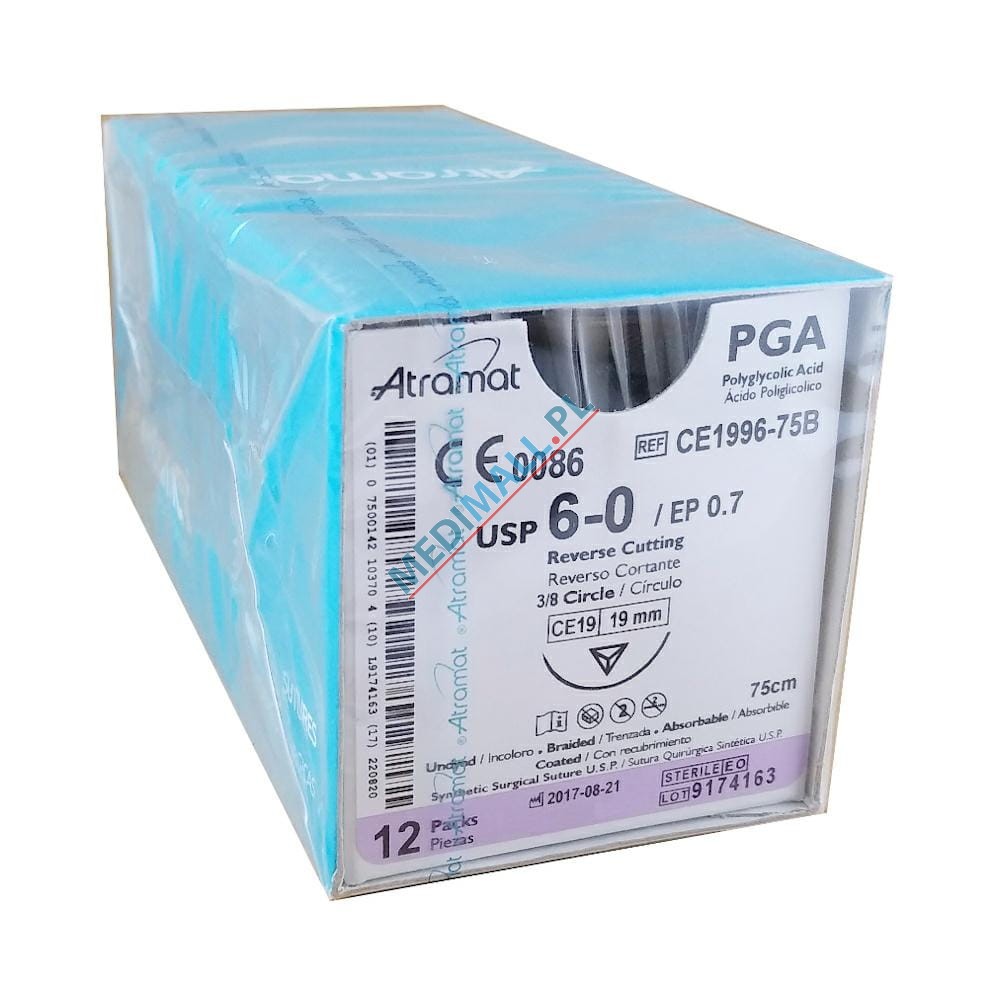 ATRAMAT PGA 6/0 CE-19 3/8 Circle Reverse Cutting Synthetic Sutures, Length 75 mm, Pack of 12