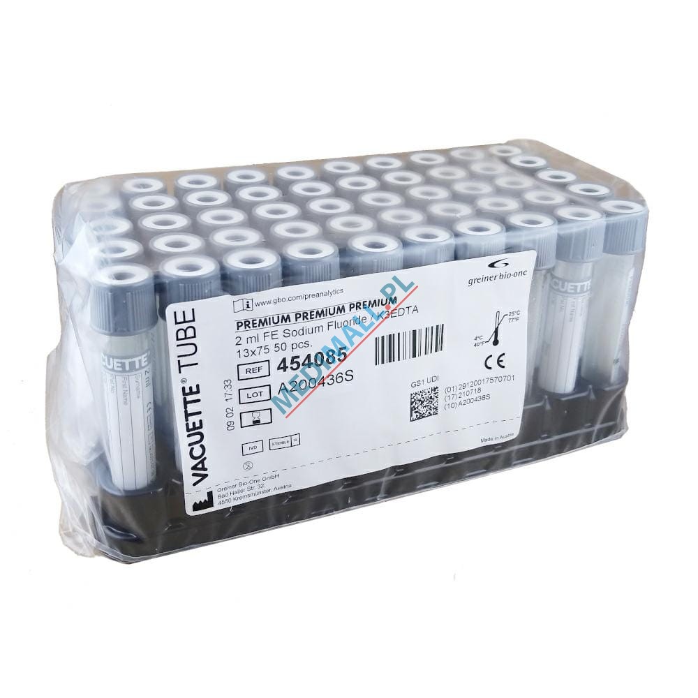 Tubes 2ml z NAF+ for glucose analysis sodium fluoride / K3EDTA PREMIUM unscrewed cork GRAY VACUETTE (50 pcs)