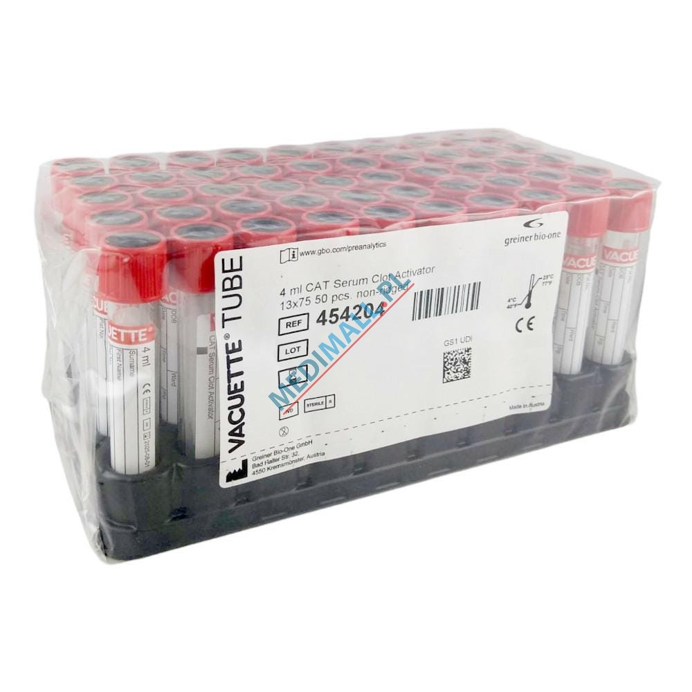 Tubes 4 ml CAT Serum Clot Activator VACUETTE removable cap RED (50 pcs)