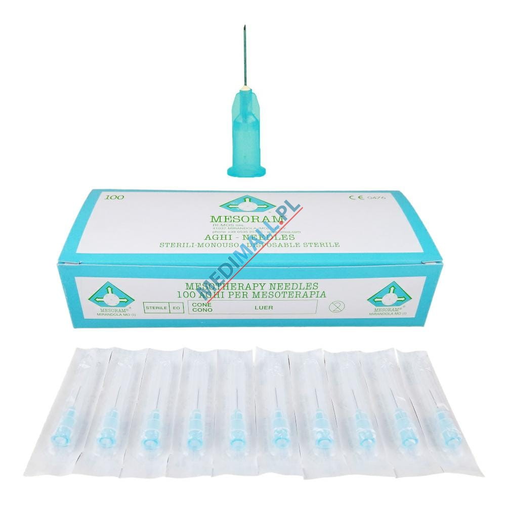 Igły do mezoterapii MESORAM 0,4 x 12 27G x 1/2" niebieskie/szare ref. 712305 (100 szt.)