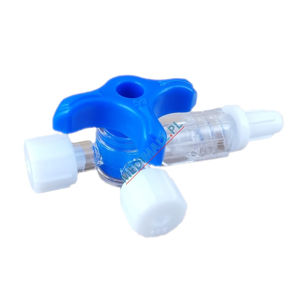 Zaworek trójstronny / kranik trójdrożny wyposażony w technologię umożliwiającą dokładną oraz precyzyjną - skokową zmianę pozycji zapewniającą całkowitą regulację przepływu. Produkt służy do regulacji przepływów płynów infuzyjnych podczas ich podawania.Właściwości: