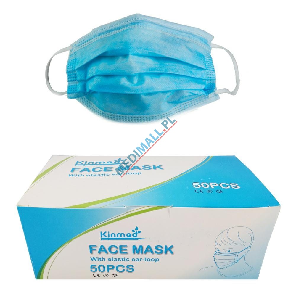 Maseczki chirurgiczne z GUMKAMI typ II (50 szt.) KINMED NIEBIESKIE włókninowe 3-warstwowe