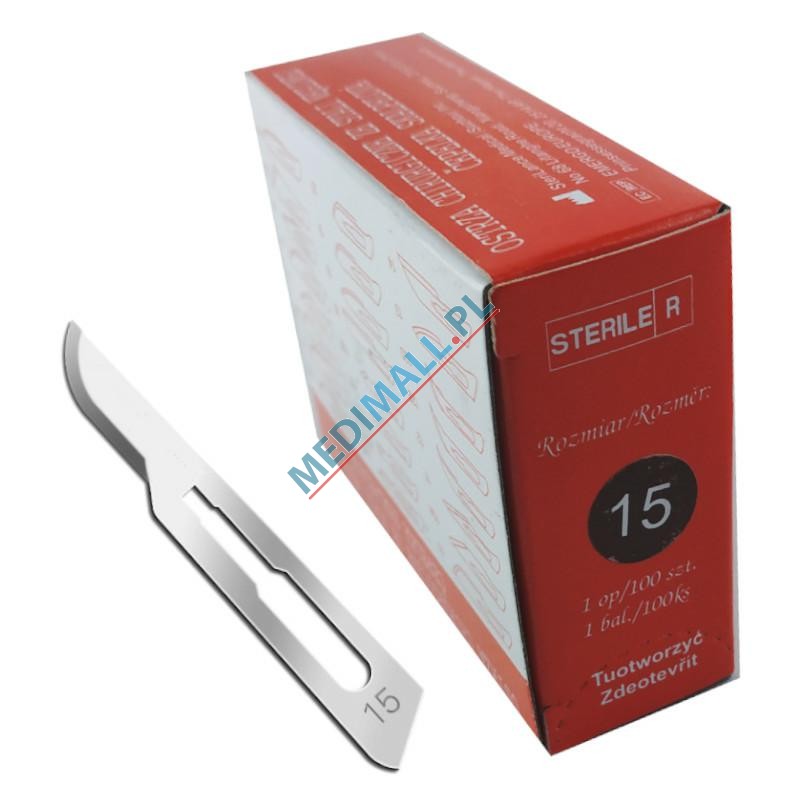 OSTRZA chirurgiczne jałowe j.u. nr 15 INTERGOS ze stali węglowej (100 szt.)