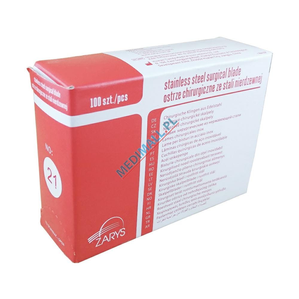 OSTRZA chirurgiczne jałowe j.u. nr 21 ZARYS ze STALI NIERDZEWNEJ (100 szt.)