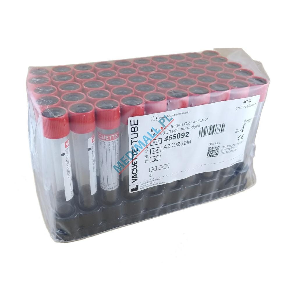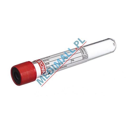 Plastikowe probówki z ustalonym fabrycznie podciśnieniem pozwalającym na pobieranie dokładnych objętości. Dołączone są do nich oznaczone kolorystycznie korki VACUETTE® Safety Cap.Używane do pobierania krwi do testów biochemicznych, wewnątrz na ściankach probówki powleczone są mikroskopijnymi drobinkami krzemionki (ditlenek krzemu) w celu przyśpieszenia krzepnięcia. Powłoka z cząsteczek aktywuje proces krzepnięcia zaraz po wymieszaniu pobranego materiału w probówce. Zaletą tego produktu jest możliwość użycia w szerokim zakresie temperatur, szybkie wykrzepianie (mniej niż 10 min), spełnia wymagania dla szybkich badań klinicznych i pogotowia.Pojemność: 9ml