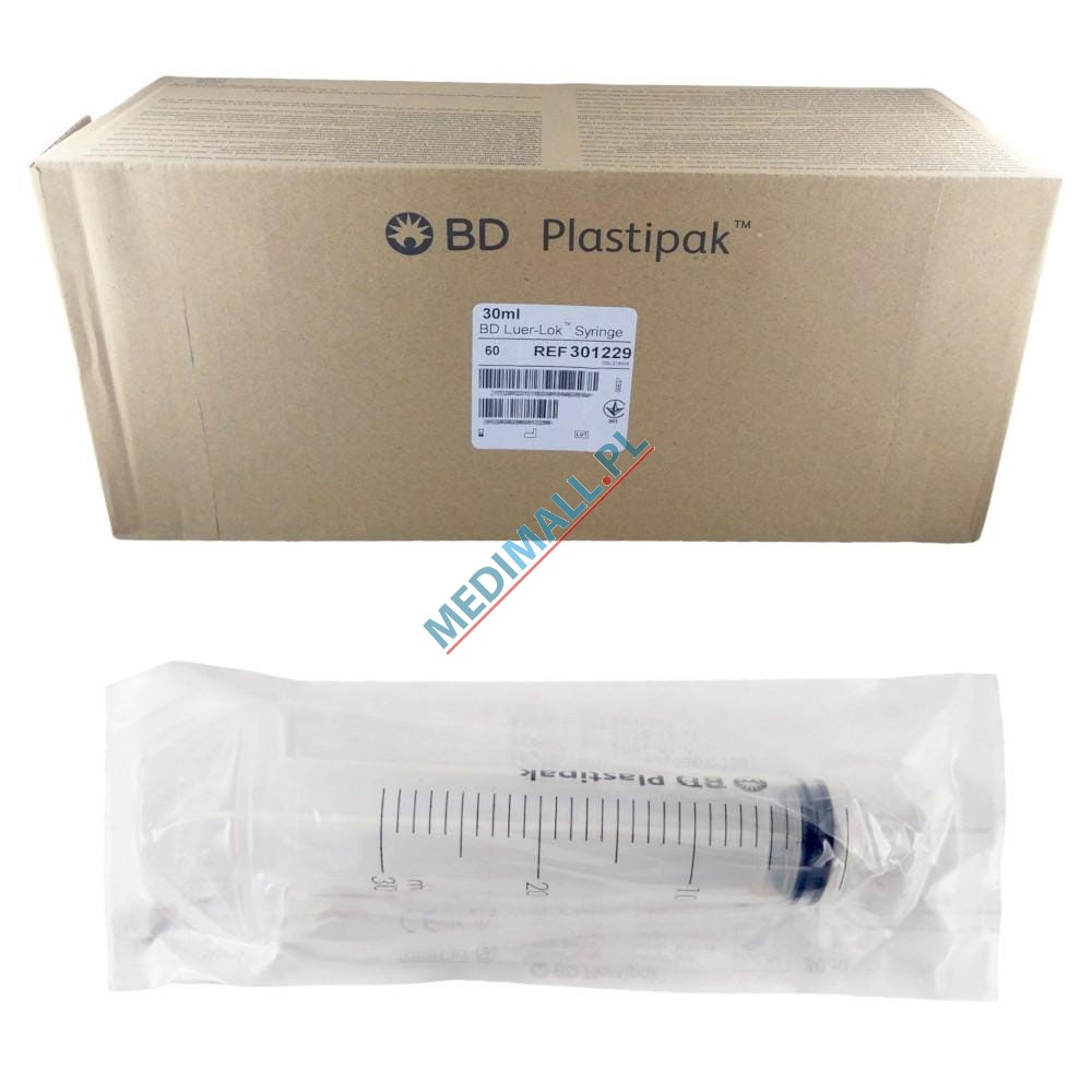 Strzykawki 3-częściowe BD PLASTIPAK 30ml Luer-Lok Tip (Luer-Lock) ref. 301229 (60 szt.)