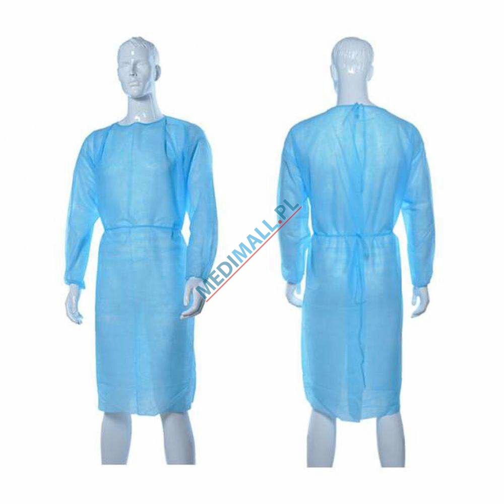 Wykonany z medycznej włókniny o gramaturze 20g fartuch. Wyrób pakowany w foliopak po 10 szt, niesterylny. Fartuch wiązany w pasie na troki oraz z rękawem wykończonym gumką. Zastosowanie takiego mankietu ogranicza wagę oraz objętość fartucha, zmniejszając w ten sposób wielkość odpaduWłaściwości: