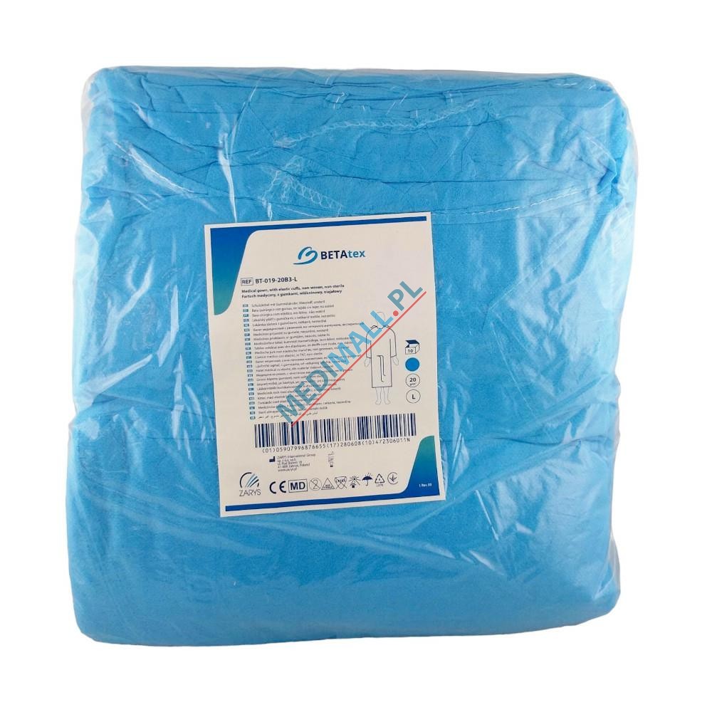 Fartuch medyczny rękaw na GUMKĘ rozm. L (10 szt.) BETATEX NIEBIESKIE włókninowy 20g niejałowy
