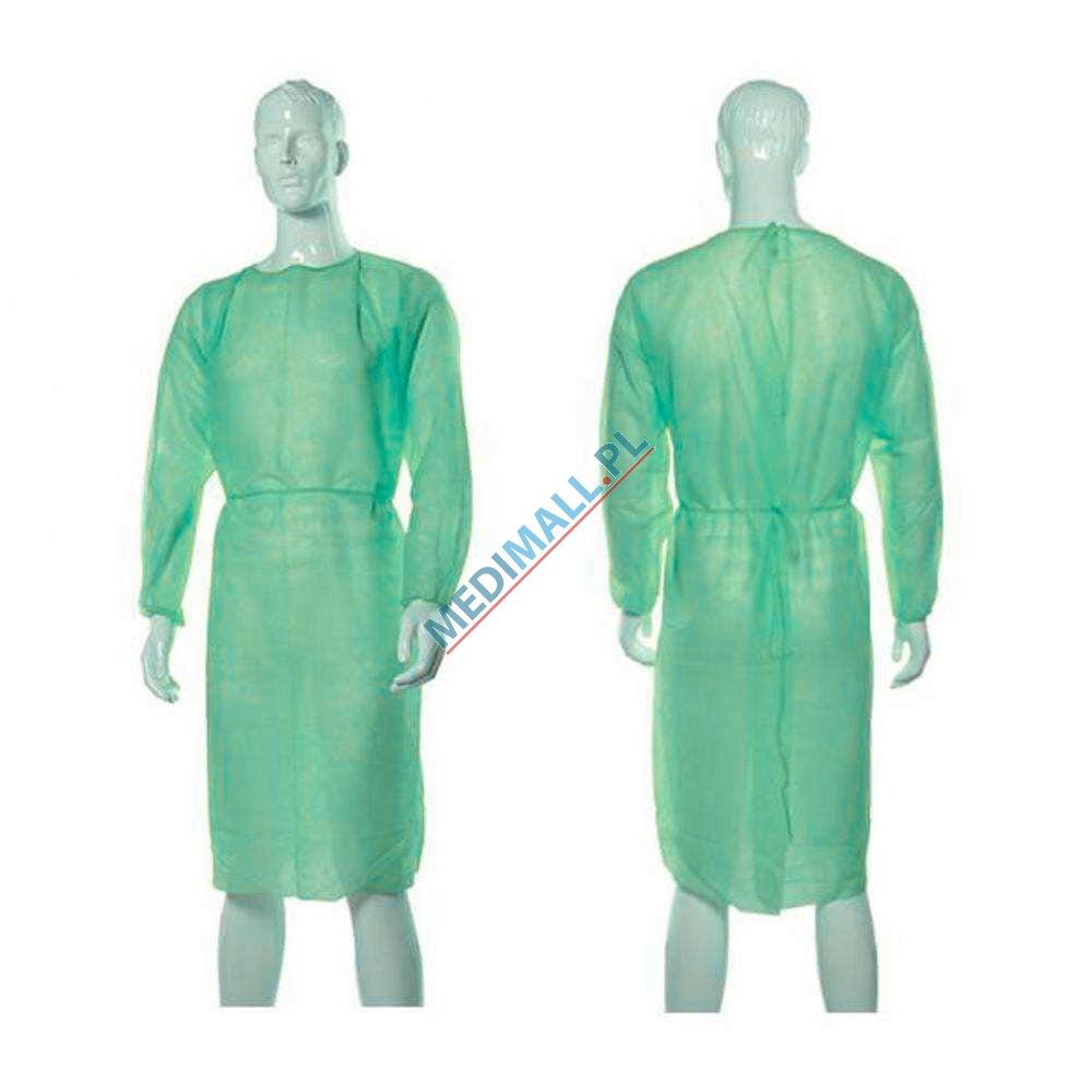 Wykonany z medycznej włókniny polipropylenowej o gramaturze 30g/m2. Wyrób pakowany w foliopak po 10 szt, niesterylny, wiązany na troki. Rękaw (długi) zakończony mankietem. Jednokrotnego użycia. Produkt przeznaczony dla placówek medycznych - do stosowania przez personel lub odwiedzających, w celu zmniejszenia przenoszenia zanieczyszczeń lub czynników infekcyjnych.Właściwości: