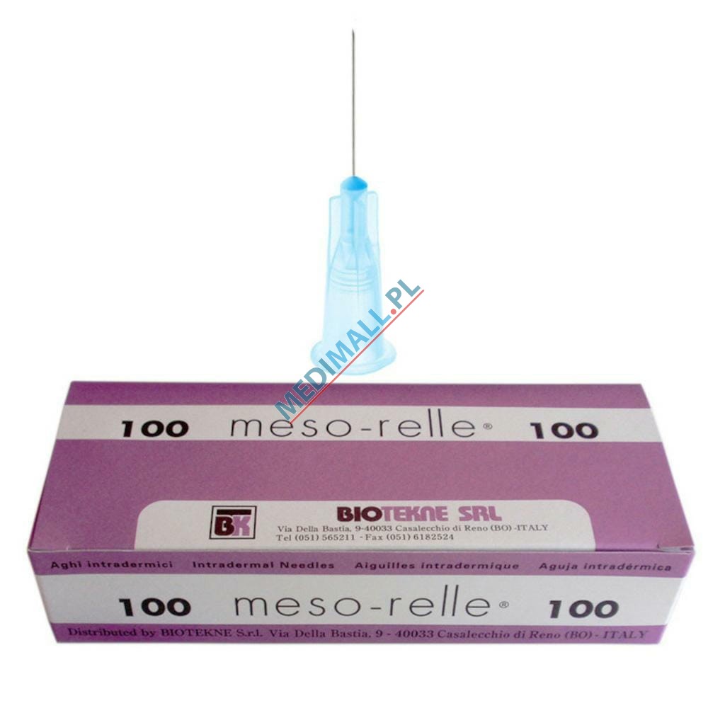 Produkcji włoskiej to gwarancja najwyżej jakości, potwierdzonej znakiem CE. Wykonane ze stali chirurgicznej, wielokrotnie ostrzone zapewniają bezbolesną iniekcję. Ostrze typu lancet zapewnia szybkie przebicie i rozepchnięcie tkanki co minimalizuje krwawienie i ślady po wkłuciu.Igły wstępują w różnych średnicach: 27G (0,4 mm), 30G (0,3 mm), 31G (0,26 mm), 32G (0,23 mm) i różnych długościach w zależności od przeznaczenia igły. Krótkie Meso Relle doskonale sprawdzają się przy mezoterapii igłowej, dłuższe natomiast idealnie sprawdzają się przy wypełniaczach, skleroterapii czy stomatologii.